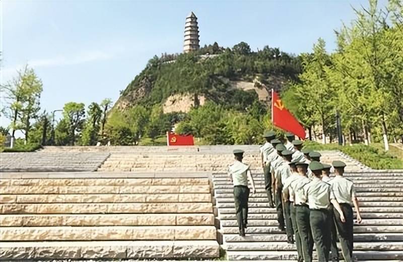 武警陕西总队延安支队组织党员到浮图山开展专题党日行为(贵府相片)。杜威龙摄