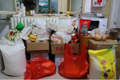 在这80平米的斗室子里,床位上铺着干净柔嫩的床垫,大桶花生油和瓶瓶罐罐的调味品站满了厨房的窗沿,米、面、干果在客厅垒起小山,雪柜里的青菜和鸡蛋……在这里,略一翻炒就能端出一盘直冒热气的家常饭。