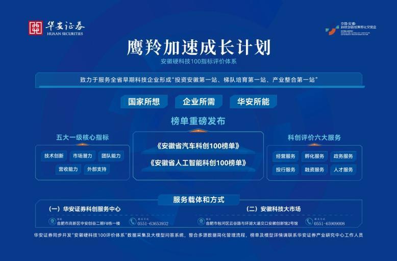 推出“鹰羚加快成长筹商”,构建硬科技100筹商评价体系,顺利发布安徽省汽车科创100、东谈主工智能科创100等巨擘榜单,精确画图产业鼎新“热力争”与“后劲股”辩别。在此基础上,华安证券与斥地银行安徽省分行共建纠合回拜机制,鼓励科创评价与银行授信体系买通,打造“商行+投行”“债权+股权”协同的证银配合新格局。